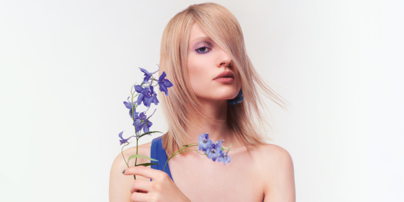 Die Dynamik des Looks kommt in unterschiedlichen Stylings zum Vorschein, mal mittig gescheitelt und glatt, mal asymmetrisch mit einer sanft gewellten Textur. Eine leichte Tiefe durch warme Blond-Nuancen kommt bei jeder Bewegung des Haares, besonders, wenn eine leichte Welle kreiert ist, zum Vorschein. Wird der geometrische Schnitt eher glatt getragen, besticht die Farbe durch monochrome Gleichmäßigkeit.